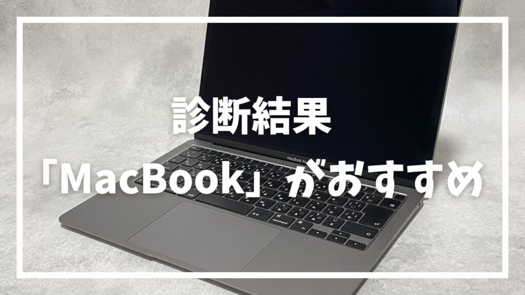 診断結果:あなたにはMacBookが最適です 診断の結果、あなたの作業スタイルにはMacBookがピッタリです。以下の理由であなたのニーズにマッチしています。 MacBookがあなたに向いている理由 MacBookは長時間のタイピングでも疲れにくいキーボードを搭載して... -