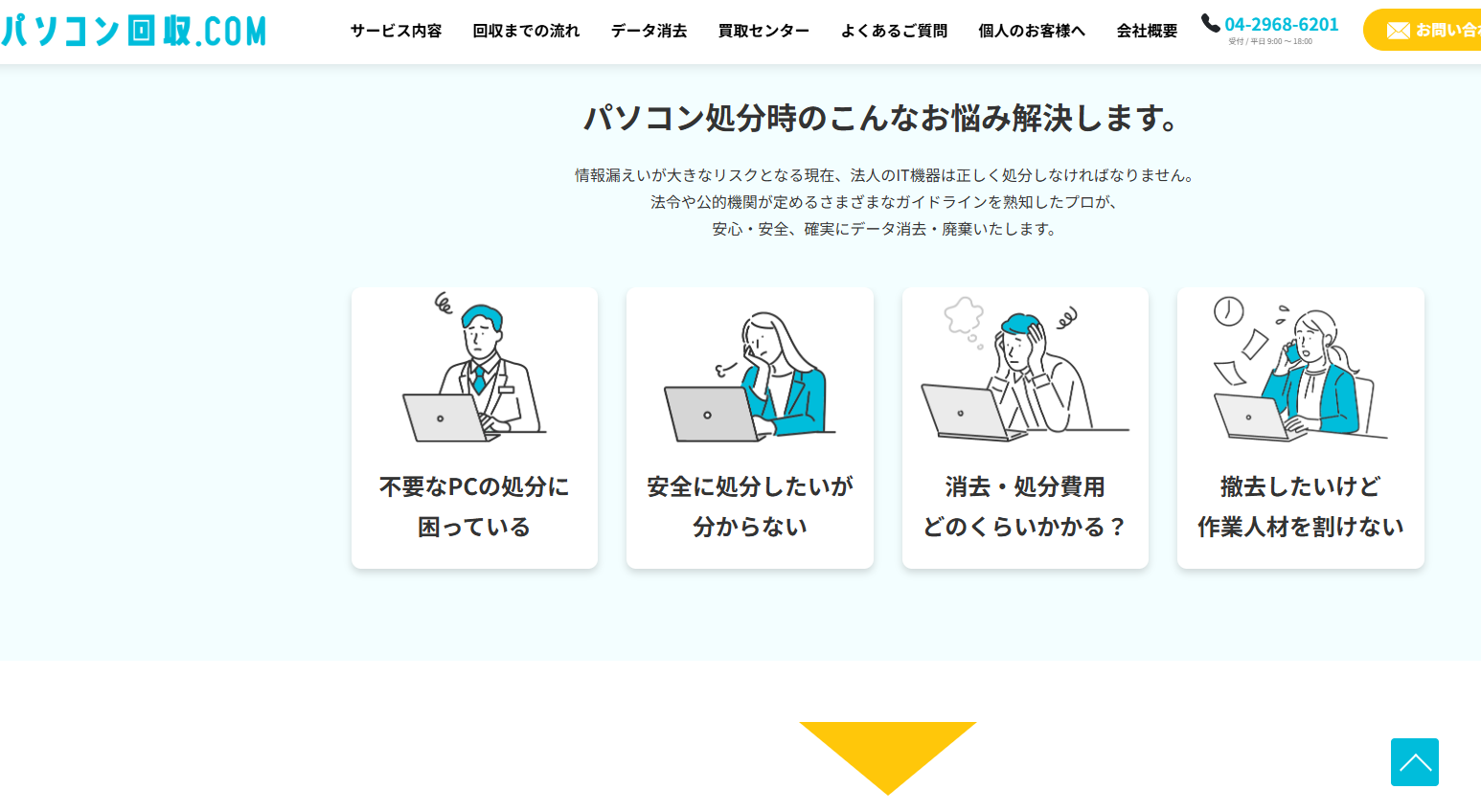 アールキューブは自社で「パソコン回収ドットコム」という回収システムを持ち、企業・個人から直接PCを回収して販売しています。卸売業者やオークションを介さないため、中間マージンがまるごとカットされます。