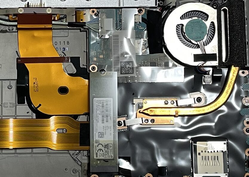 先述の通り、SV7は熱設計に余裕がなく、ブラウザでタブを複数開いたり動画を見たりすると、すぐにファンが「シャーッ」と高回転で回り始める傾向があります。静かな図書館や会議室では、この甲高い風切り音が気になってしまうかもしれません。