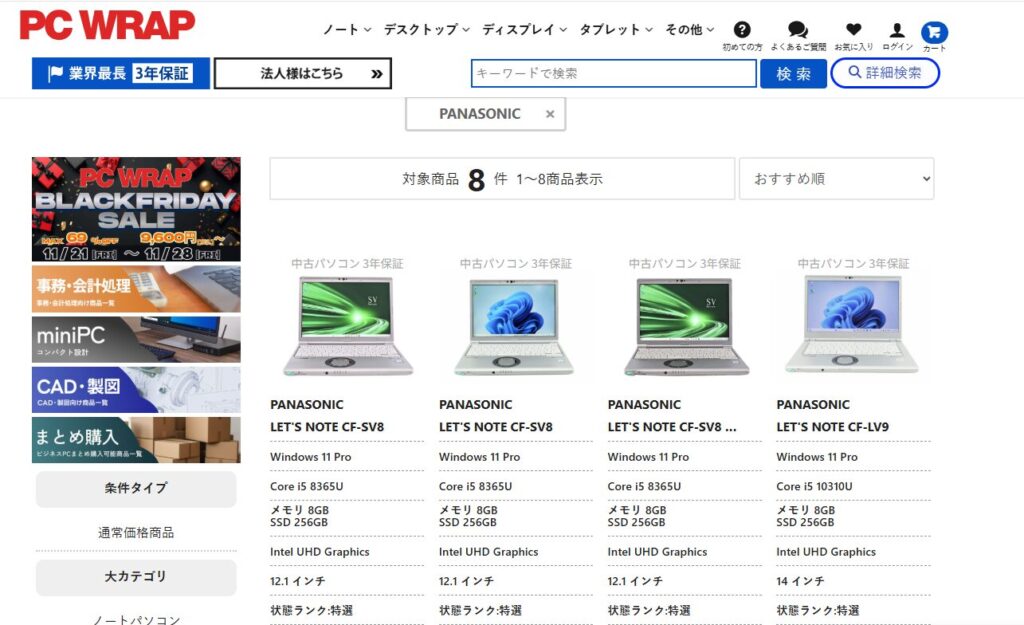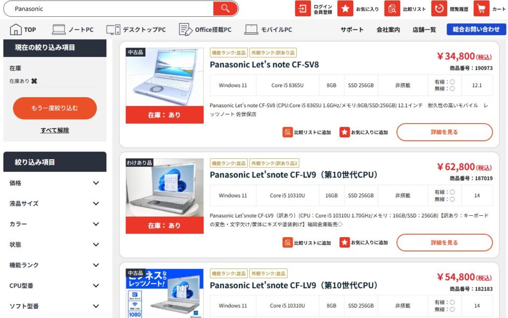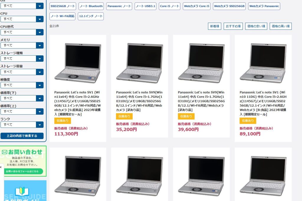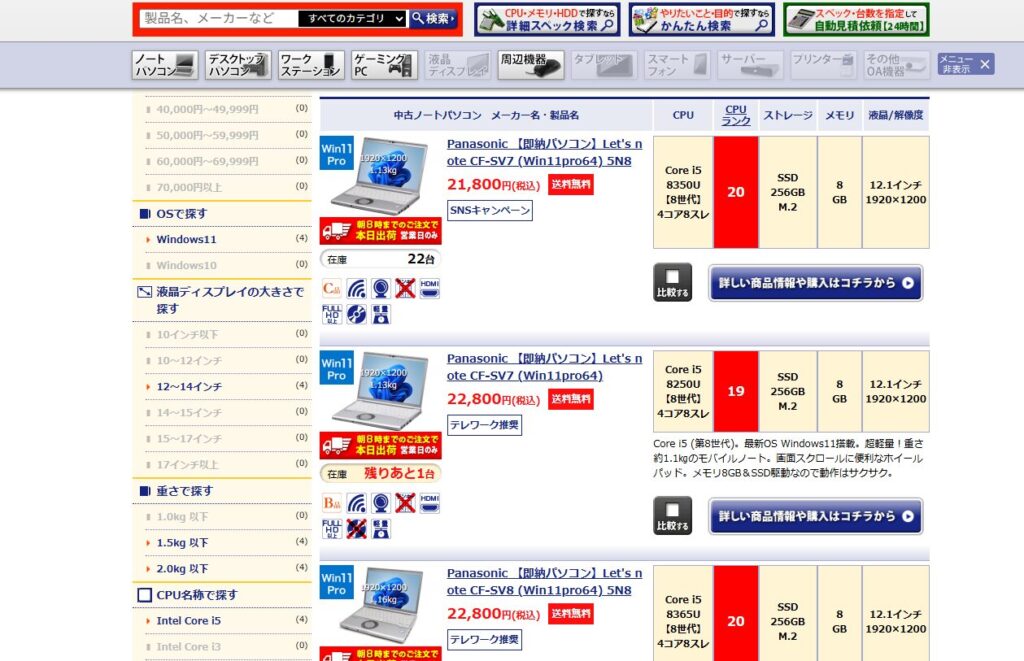 持ち運びが多いレッツノートだからこそ、うっかり落とした時の保証があるのは心強いですね。在庫の回転が速いので、掘り出し物を見つけたら即決が必要です。