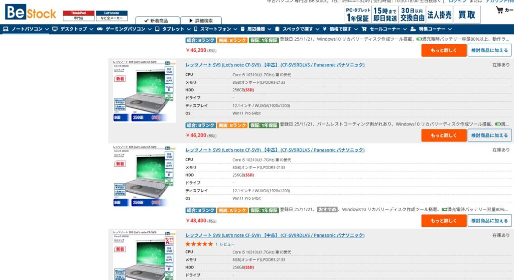 ThinkPadやレッツノートに強い老舗ショップ、Be-Stockは、在庫の豊富さと情報の透明性が魅力です。