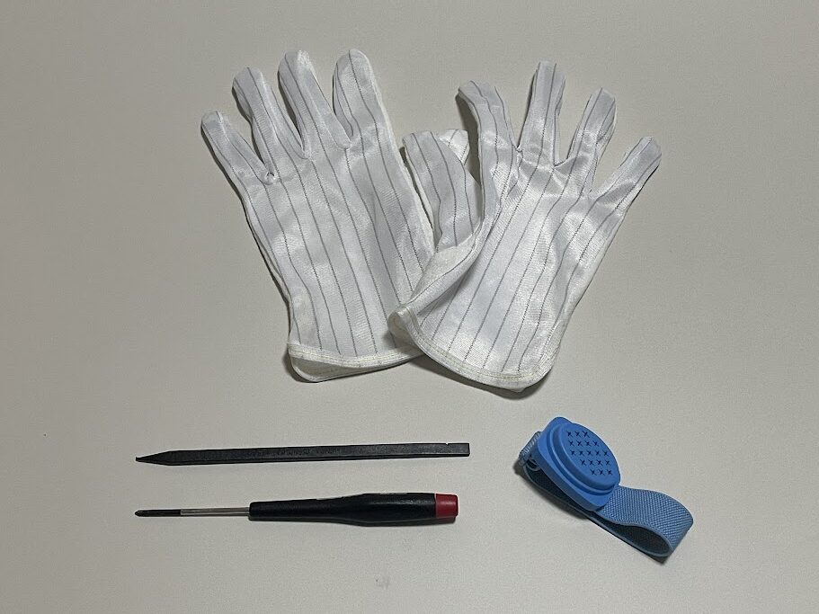 素手で作業すると、手の脂や汗が端子に付着し、接触不良の原因になります。また、レッツノートの筐体は滑りやすいため、しっかりとホールドできる滑り止め付きの手袋が必須です。静電気対策とグリップ力を両立できるため、安全かつスムーズに作業が進みます。