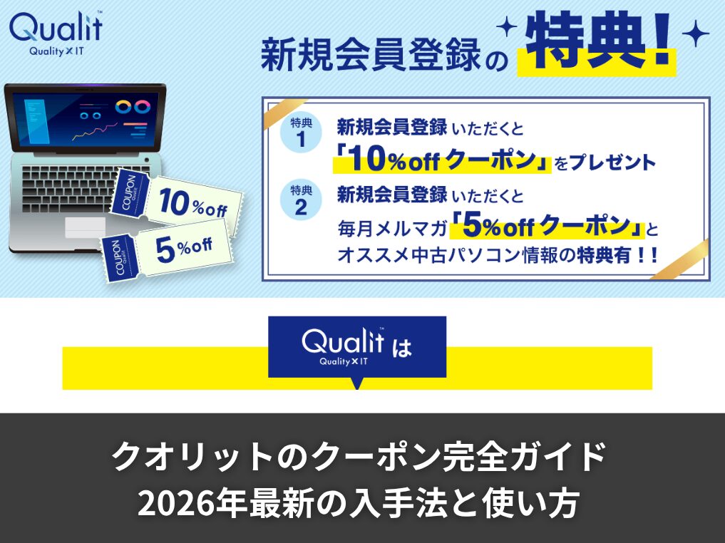 クオリットは中古PC業界の中でも品質管理と保証体制が充実しているショップです。クーポンをうまく使えば、さらにコストを抑えながら質の高いPCを手に入れられます。