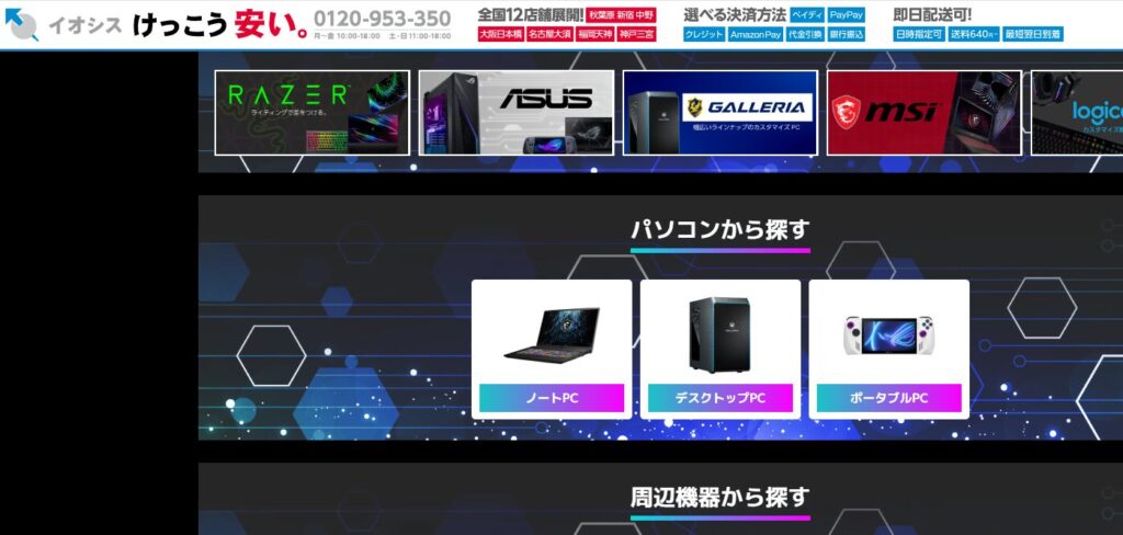 ショップゲーミングノート在庫標準保証実店舗特徴