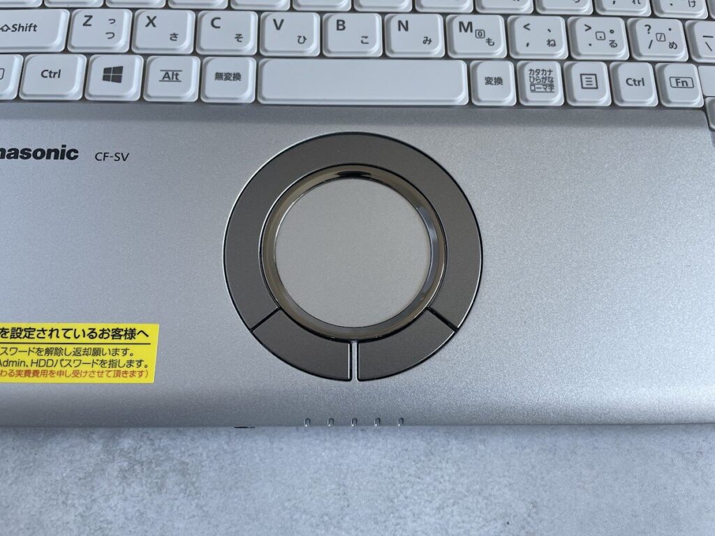 レッツノートには「ホイールパッド」と呼ばれる独自の丸いタッチパッドが搭載されています。一般的な四角いタッチパッドとは操作感がまったく異なり、パッドの外周を指でなぞるだけで、途切れることなく連続スクロールができます。
